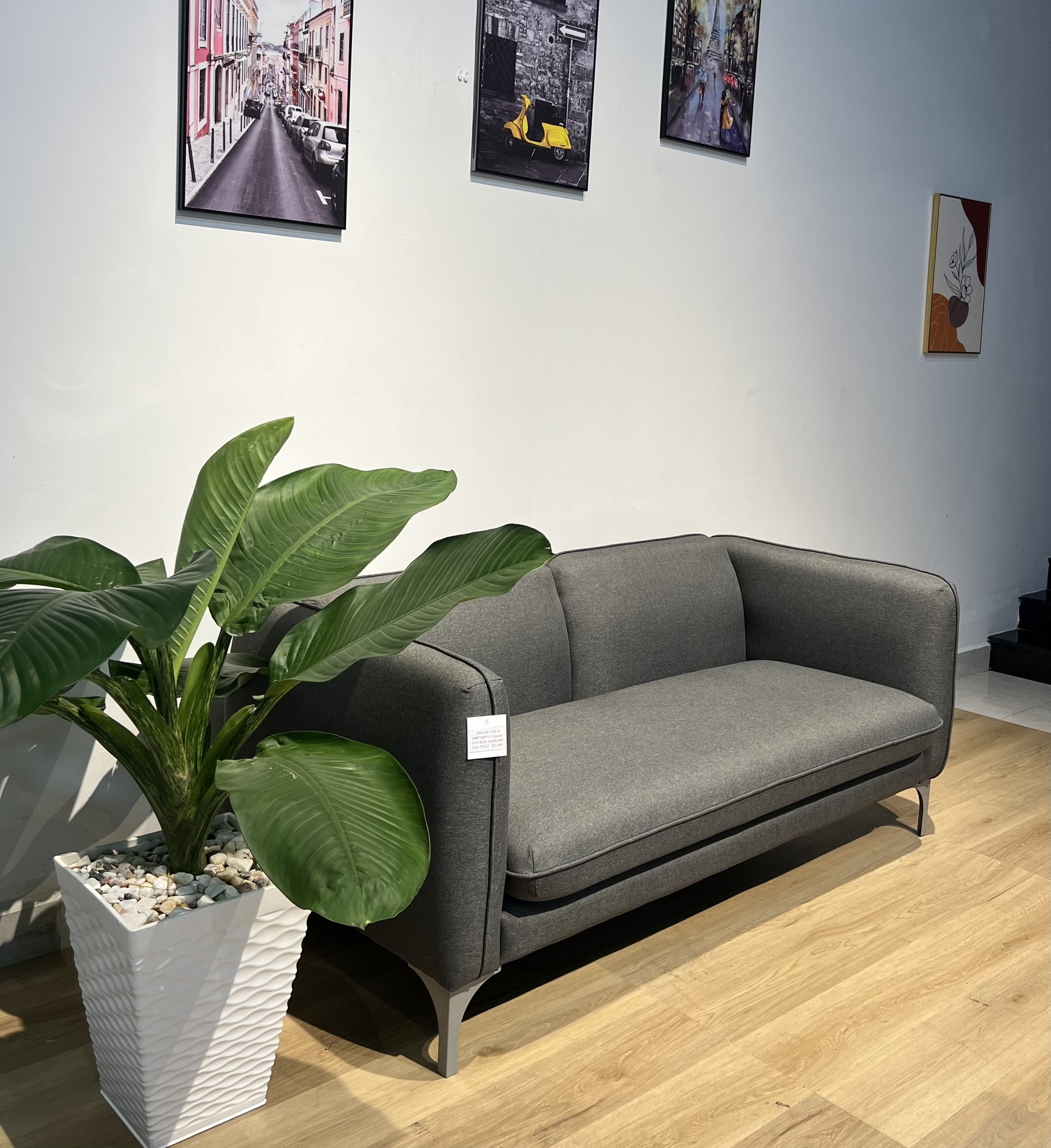 • Chân sofa bằng kim loại sơn tĩnh điện hoặc inox, kiểu dáng thanh mảnh, giúp tổng thể trông nhẹ nhàng và cao ráo.