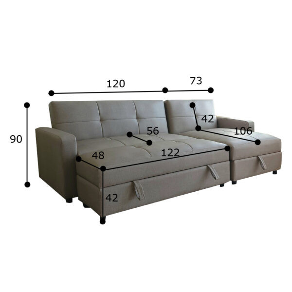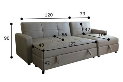 • Dài 193 cm (120 + 73 cm) x Cao 84 cm